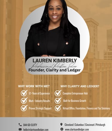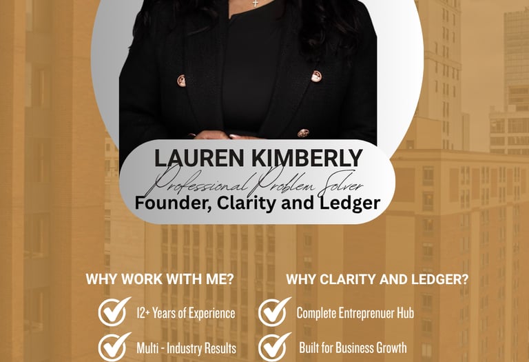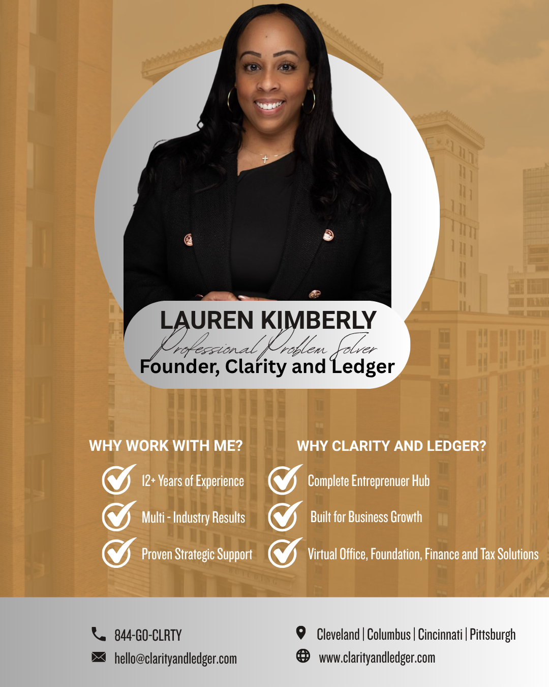 Lauren Kimberly is well known finance executive, entrepreneur, and author who has spent over a decade mastering the intersection of accounting, operations, and business strategy. She climbed the corporate ladder into C-suite leadership roles, leading financial transformation, improving systems, and driving organizational growth. Since 2016, she has founded and operated multiple businesses across industries, demonstrating both vision and execution. She is the founder of Clarity & Ledger, a firm dedicated to bringing structure, accuracy, and financial clarity to businesses and individuals. Lauren is an award-recognized professional known for her impact, leadership, and commitment to excellence. Beyond her professional work, she is a passionate runner, mentor, and advocate for entrepreneurship, using her platform to guide others in building wealth, confidence, and intentional lives.